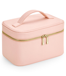 100% leather-look PU. Saffiano fine grain. Soft touch lining. Self fabric carry handles. Main zip compartment. High shine gold metal zip. Internal pouch pocket. Multi-purpose use. Tear out label. Capacity 4 litres.
